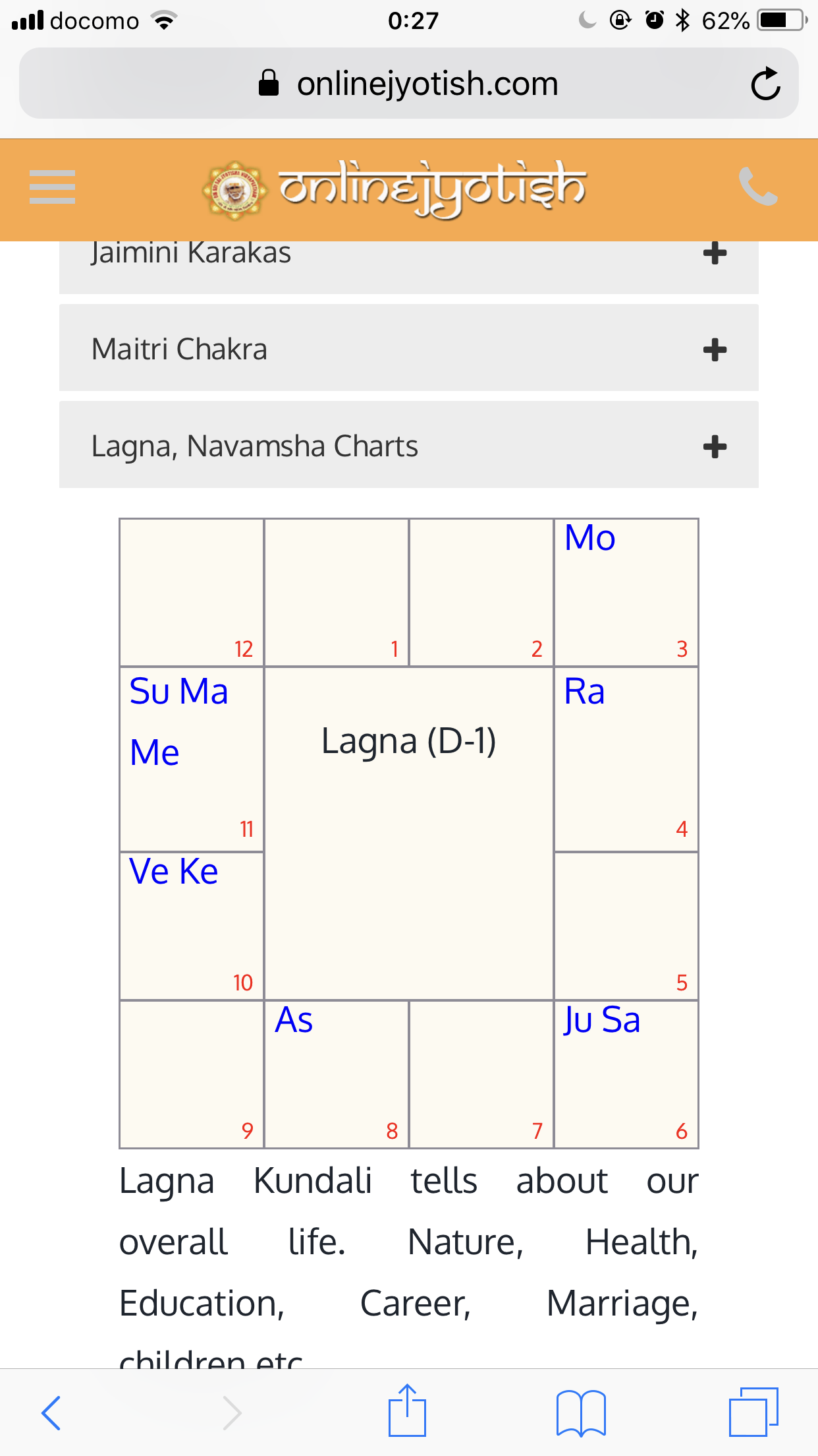インドのインド占星術サイトからD-1グラフ等を調べることができました。ただ、素人なので読むことが出来ないので、どなたかご説明していただけたら嬉しいです。