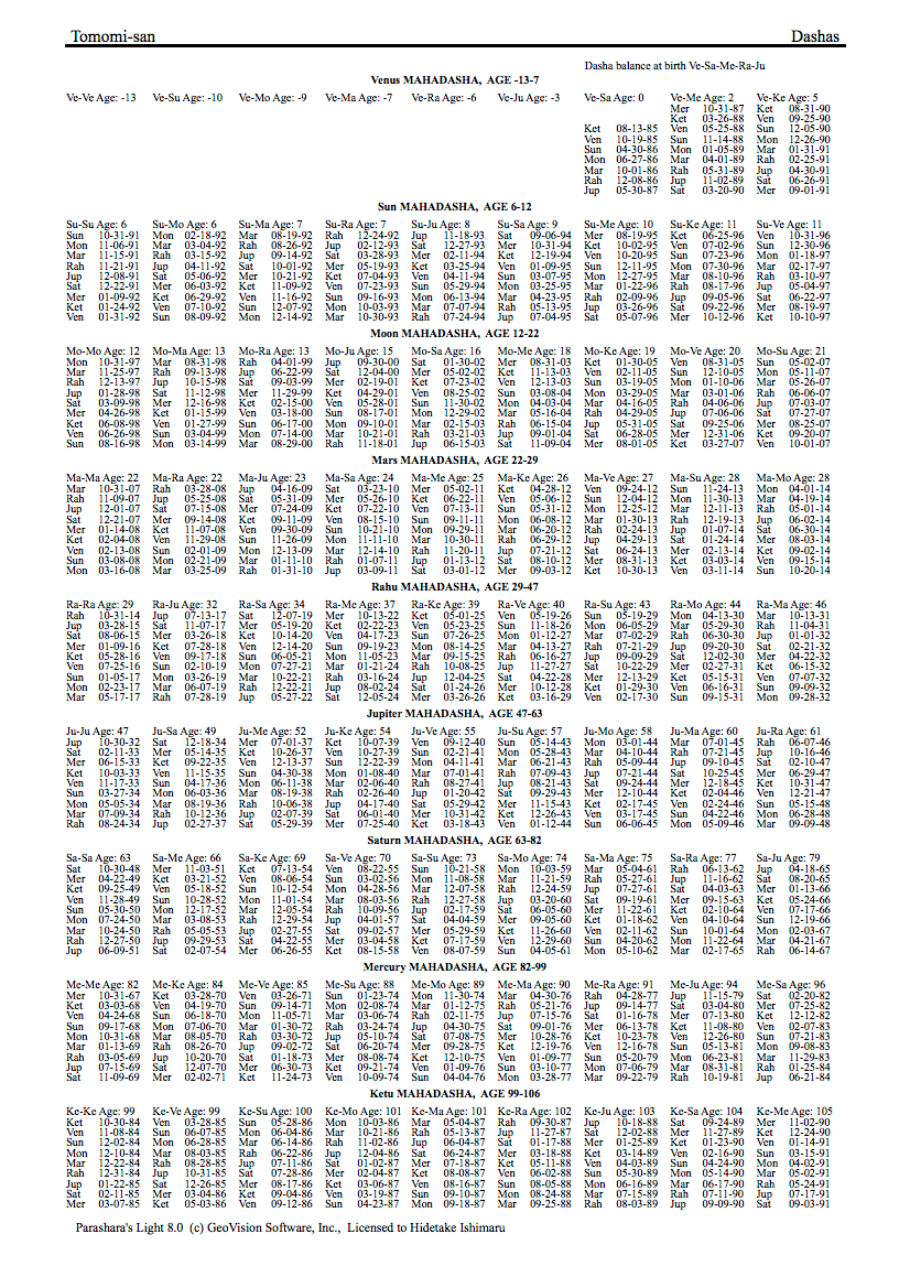 >・インド式で時期を読むには、まず「ヴィムショタリーダシャー」という手法が王道です。それで幾つかのポイントを見てみます。