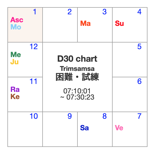 >8室支配の水星が1室に在住するのは、1室を大きく傷つけているようで、ナヴァムシャをこわごわ見ていました