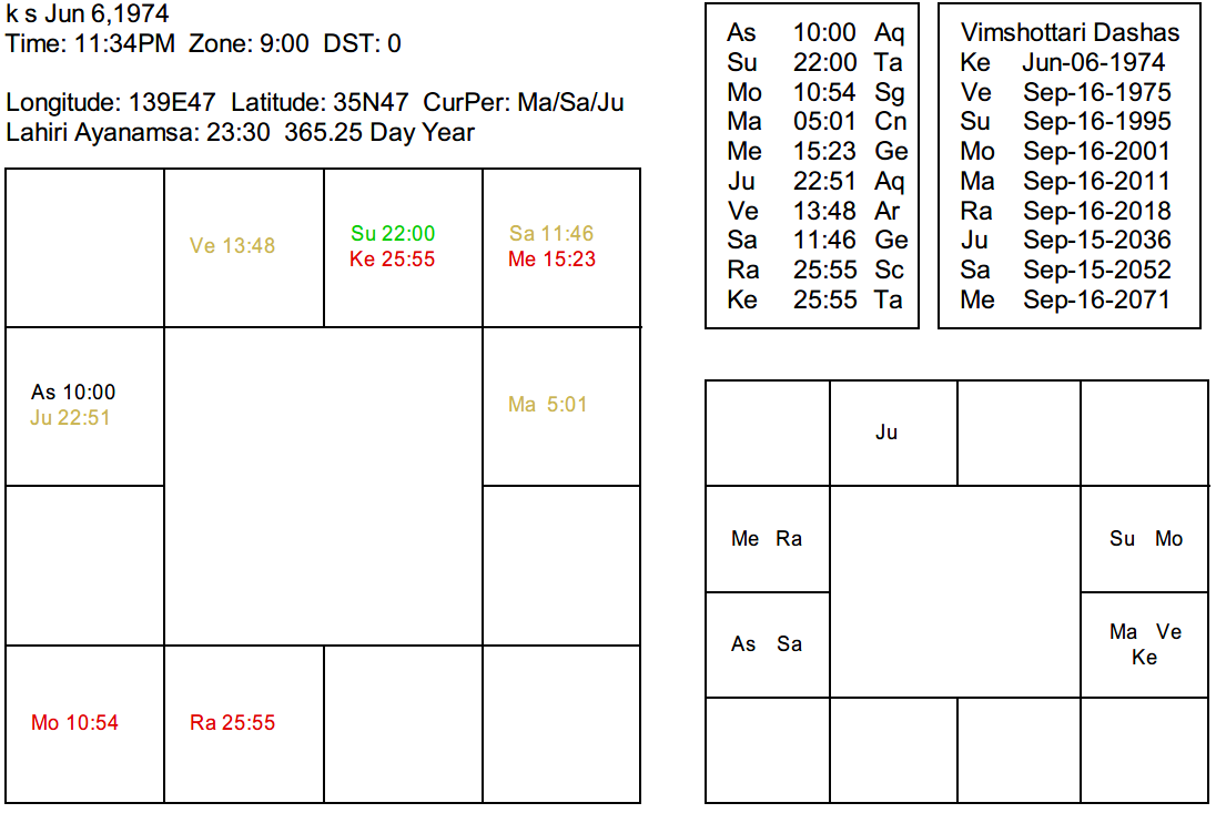 これは機能的凶星として、結果1室は木星によって傷ついている。と